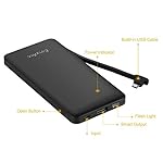 Details: EasyAcc Powerbank 6000mAh Ultra dünn Externe Batterie Micro USB eingebaut Kabel für Samsung, Huawei, Sony und weitere Smartphones
